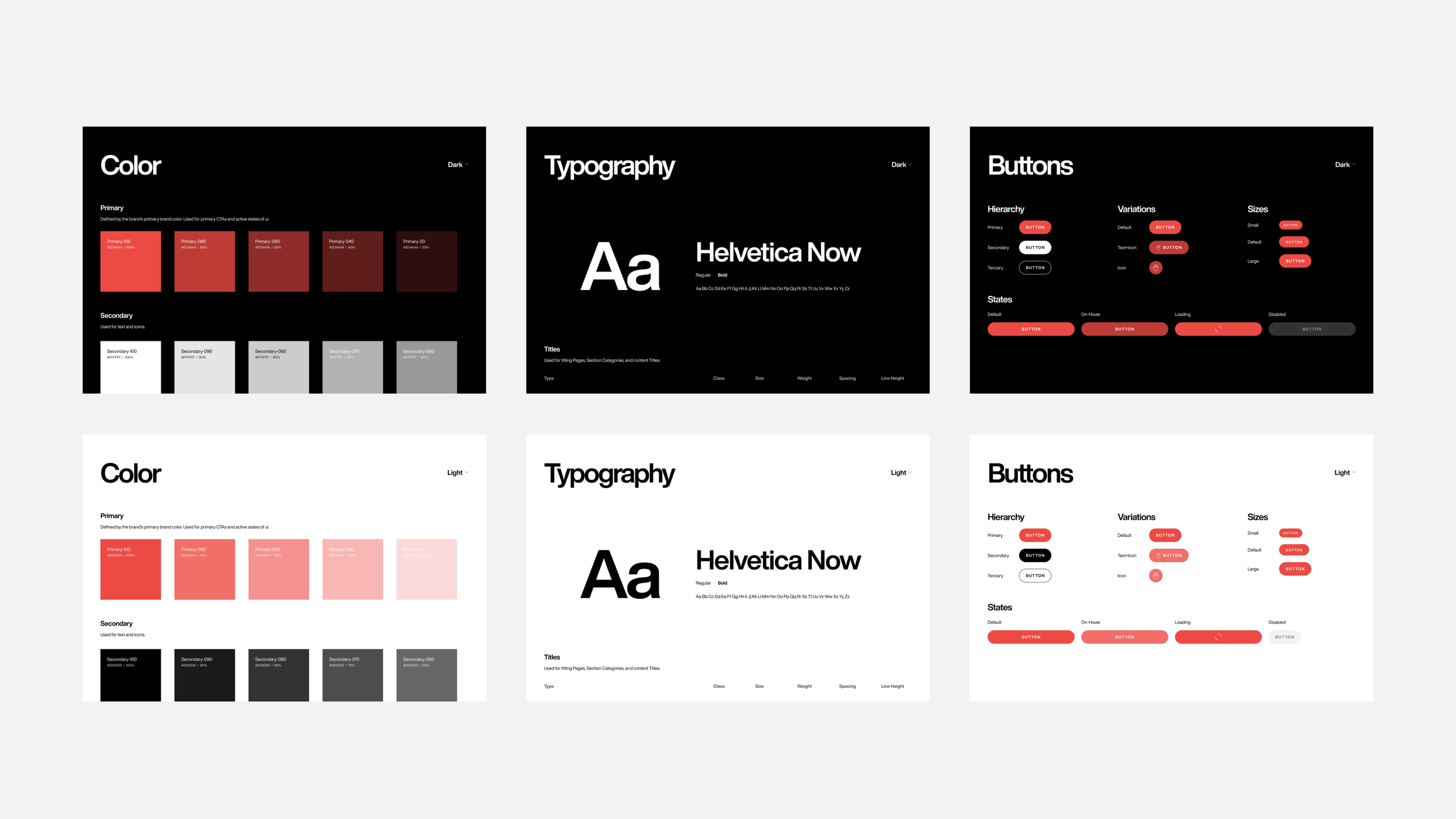 The result is Push, a simple theme-able design system. It allows Client’s the ability to select their app’s base background color, light or dark, a font color, and a primary color for CTAs. View the Push Case Study summary for additional details.